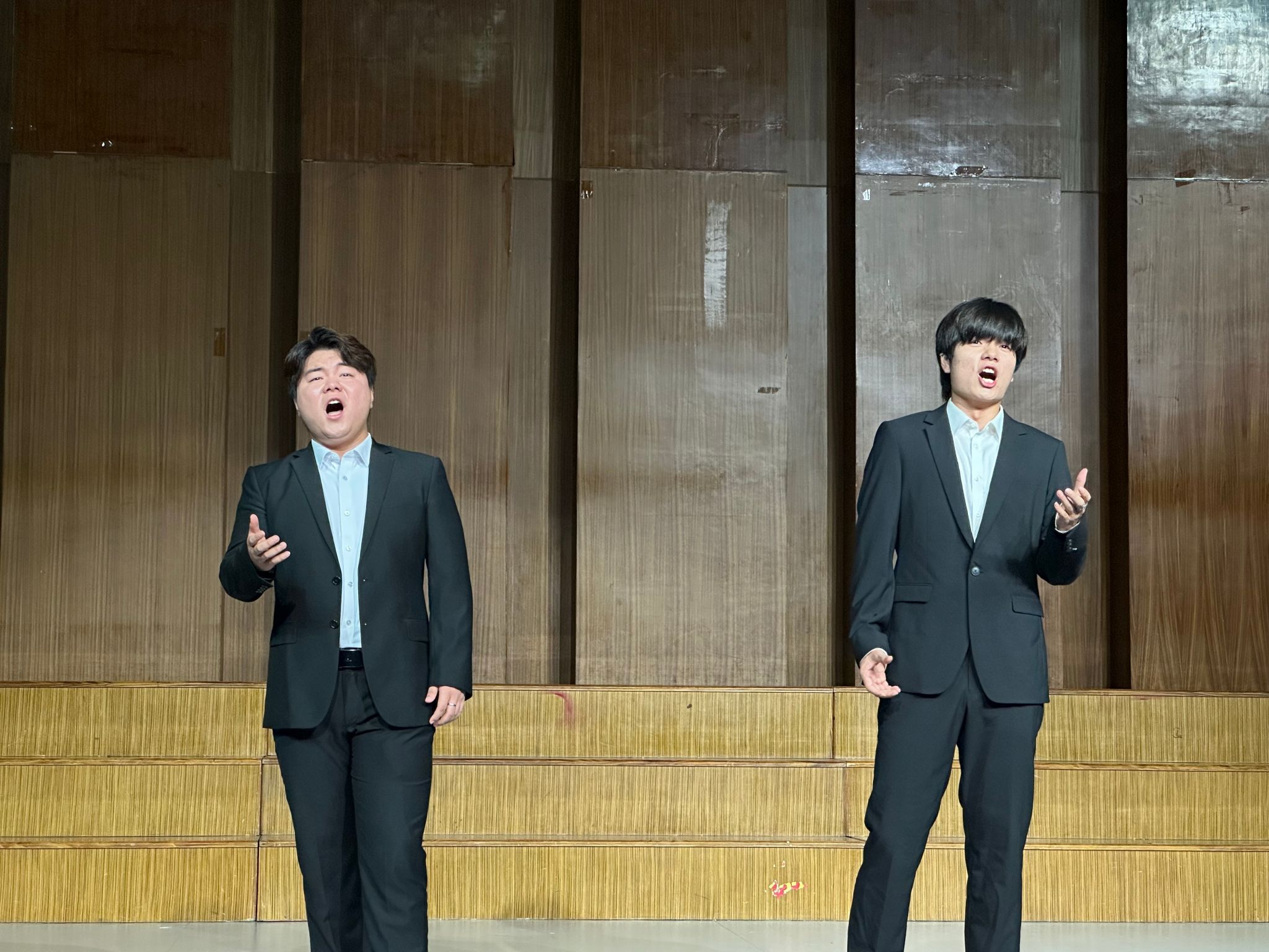 活动现场,红色旋律与党史宣讲交融共鸣。一曲《松花江上》拉开帷幕,瞬间带领观众回到山河破碎的往昔;《毕业歌》里“同学们,大家起来”的呐喊,重现爱国青年投笔从戎、奔赴救亡前线的热血场景;《义勇军进行曲》作为民族解放的号角,以铿锵旋律点燃全场爱国热忱,激发奋进力量。《长城谣》勾勒的山河图景,诉说国人对故土的眷恋与守护决心;《黄河怨》用悲怆曲调传递黄河儿女的苦难哀怨与抗争怒火;《三大纪律八项注意》彰显人民军队纪律严明、一心为民的本色,映照党的优良作风。《游击队歌》展现了游击健儿灵活作战的英姿;《延安颂》描绘了革命圣地延安的精神光芒,传递信仰力量;《嘉陵江上》倾诉着对故乡沦陷的悲愤与收复失地的渴望;《歌唱二小放牛郎》以质朴旋律讲述小英雄王二小的壮烈故事,唤起对先烈的敬重;《没有共产党就没有新中国》引发全场共鸣合唱,诠释党的引领与民族新生的关联;《歌唱祖国》以恢弘的气势收尾,凝聚师生对祖国的热爱与祝福。