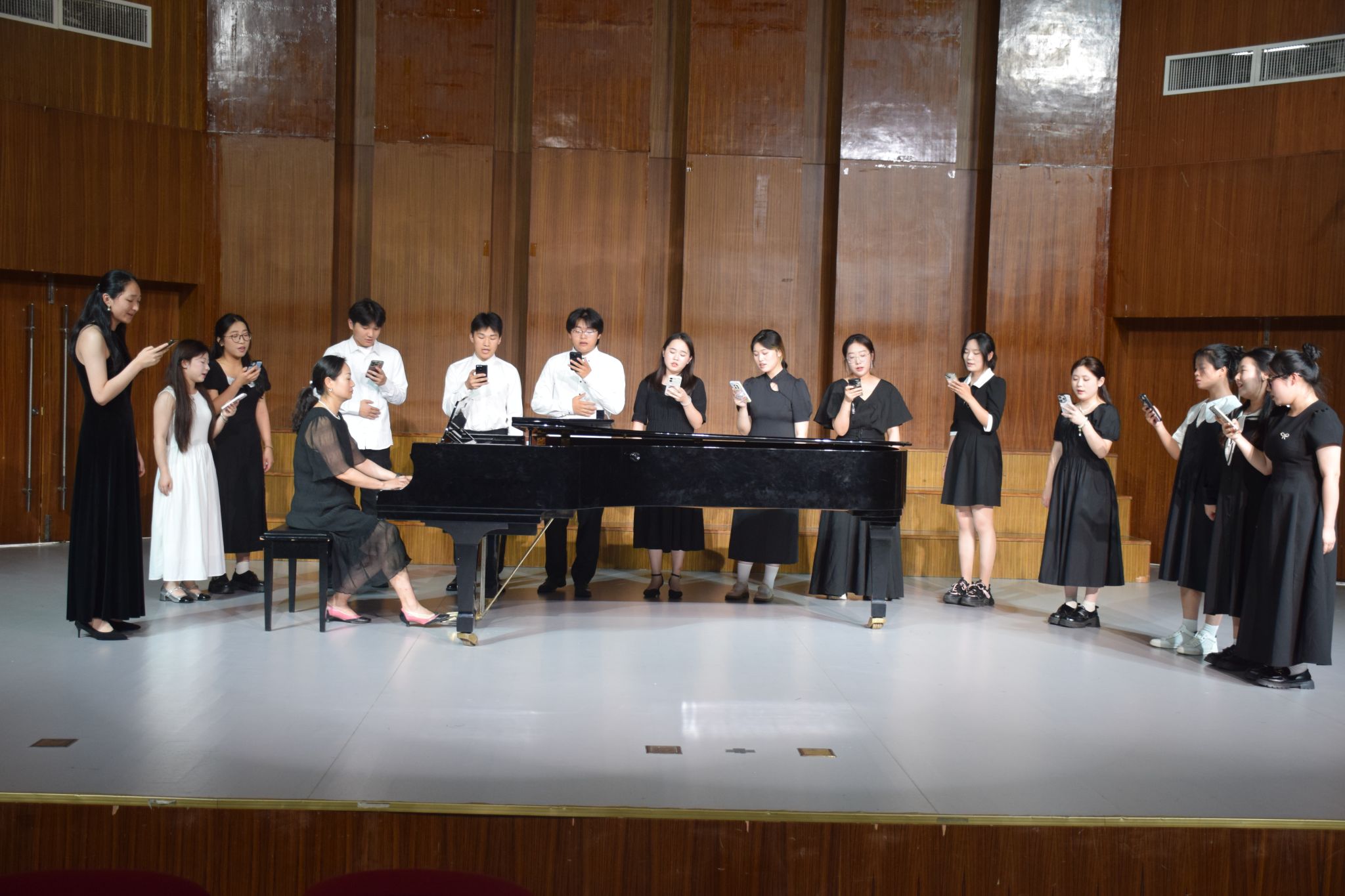 音乐会充分践行了陶行知先生“教学做合一”的教育理念。学生们在“做中学”,在编配与演绎歌曲的过程中,深入理解了教材内容,提升了未来作为音乐教师的核心能力。刘洁老师在音乐会的尾声,以一曲《同一首歌》的钢琴即兴编奏,引领全体学生共同合唱,生动诠释了“先生拿做来教,乃是真教;学生拿做来学,方是实学”的教育内涵。